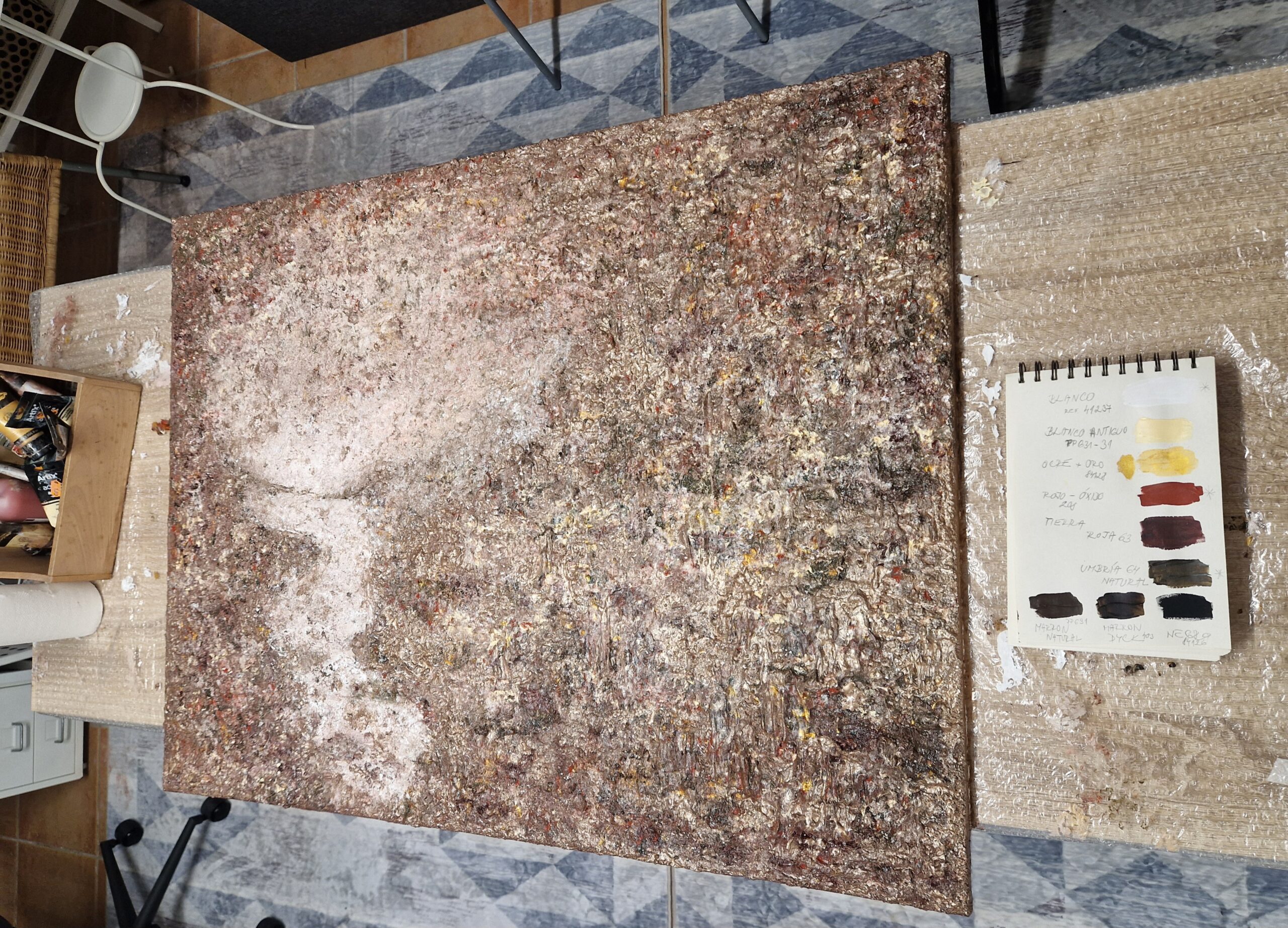En el estudio de Lucie Balaguer, la experimentación es constante. Piedras, cristales, arenas y otros materiales se mezclan para crear texturas que buscan conectar con el espectador. Su colaboración con la ONCE ha añadido una nueva perspectiva a su trabajo, mientras sigue explorando nuevas técnicas para expandir su lenguaje artístico.